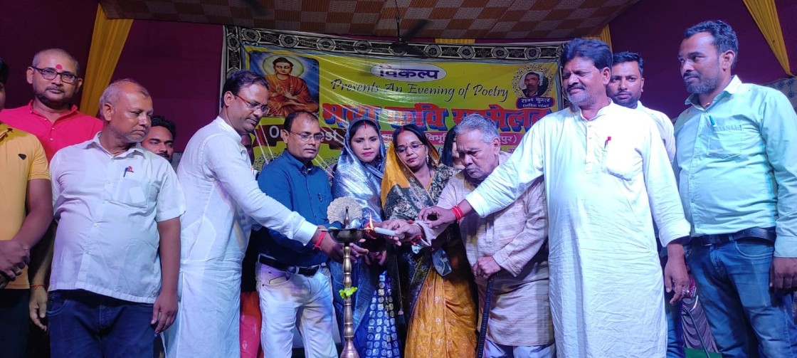 समस्तीपुर/विभूतिपुर [विनय भूषण] :- प्रखंड क्षेत्र अंतर्गत मां दुर्गा मंदिर माधोपुर परिसर में शायर दिवाकर दिव्यंक ने ज्यों ही ‘अबकी बार घड़ी लाए हो, ले जाओ…अगली बार समय तुम लाना तोहफे में…श्रोताओं के सम्मुख मंच से कही कि शब्दों की गंभीरता को देख लोगों ने जमकर दाद दी। अवसर था ‘विकल्प’ के तत्वाधान में भव्य कवि सम्मेलन का जहां कवियों ने अपनी प्रस्तुति से दर्शक श्रोताओं को मंत्रमुग्ध कर दिया। कवि सम्मेलन का उद्घाटन बीडीओ चंद्रमोहन पासवान, पूर्व प्रमुख सह पंसस रुपांजलि कुमारी, जिला पार्षद रीना राय, पूर्व मुखिया अरुण कुमार राय और वरिष्ठ साहित्यकार रामाकांत राय ‘रमा’ ने संयुक्त रुप से दीप प्रज्वलित कर किया।