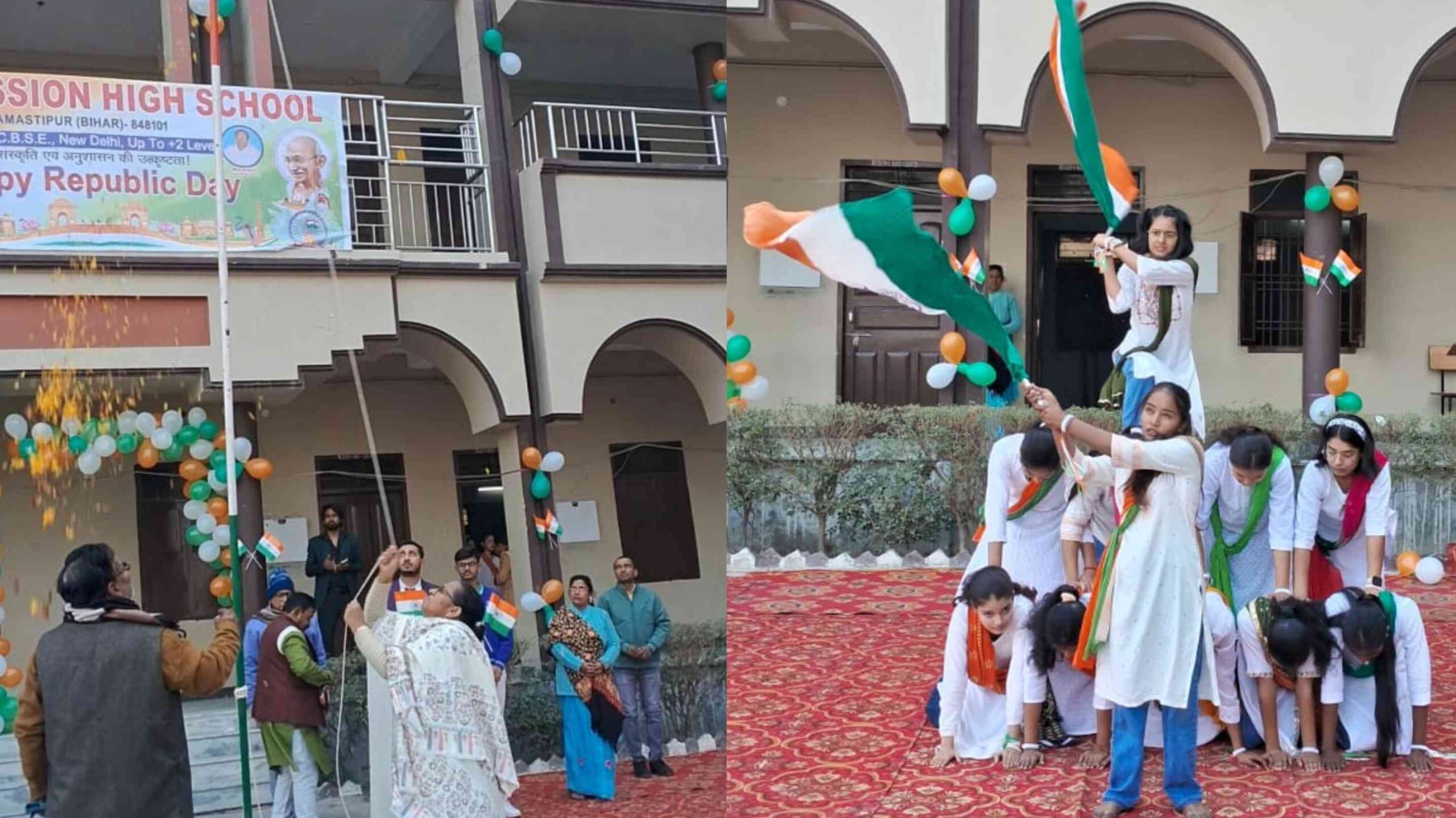 समस्तीपुर :- गणतंत्र दिवस के अवसर पर होली मिशन हाई स्कूल के चारो शाखाओं मोहनपुर, काशीपुर, सतमलपुर एवं दलसिंहसराय में रंगीन फताकों, बैलूनों तथा हाउस ड्रेस, स्कूल एवं मिल्ट्रिी ड्रेस से सुसज्जित विद्यालय के विशाल प्रांगण में संस्था के सचिव सह संस्थापिका विभा देवी के द्वारा सभी की गरिमामयी उपस्थिति में तिरंगा को फहराकर भारत के राष्ट्रीय पर्व को 76वें गणतंत्र दिवस को मनाया गया।