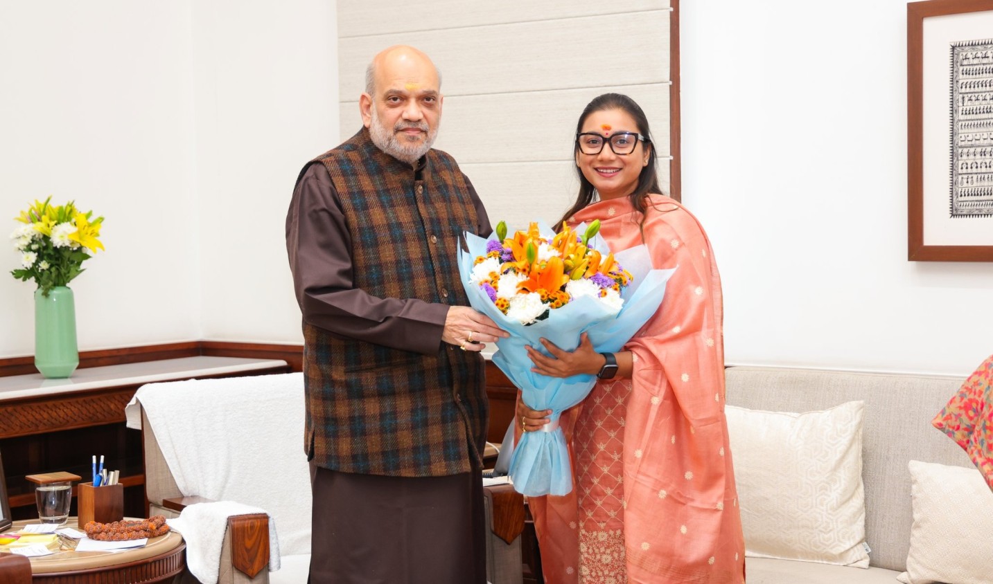 अमित शाह से मिलीं समस्तीपुर की सांसद शांभवी चौधरी, पति सायन कुणाल भी रहे साथ