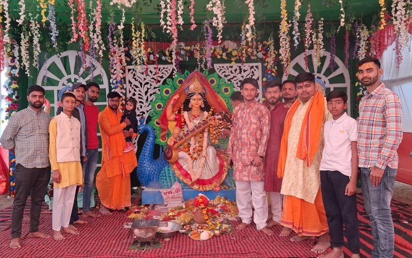 विद्यार्थियों ने पूजा कर मां सरस्वती से सुबुद्धि और समृद्धि की कामना की। बताते चले हिंदू पंचांग के अनुसार, माघ माह के शुक्ल पक्ष की पंचमी तिथि को बसंत पंचमी का त्योहार मनाया जाता है। शहर के प्रोफेसर कॉलोनी गली नम्बर- 1 में Eleve Friends Club द्वारा भी मुर्ति स्थापित कर पूजा-अर्चना की जा रही है। मौके पर आयुष, अंकित, दीपक, शौर्य समेत अन्य उपस्थित रहे।