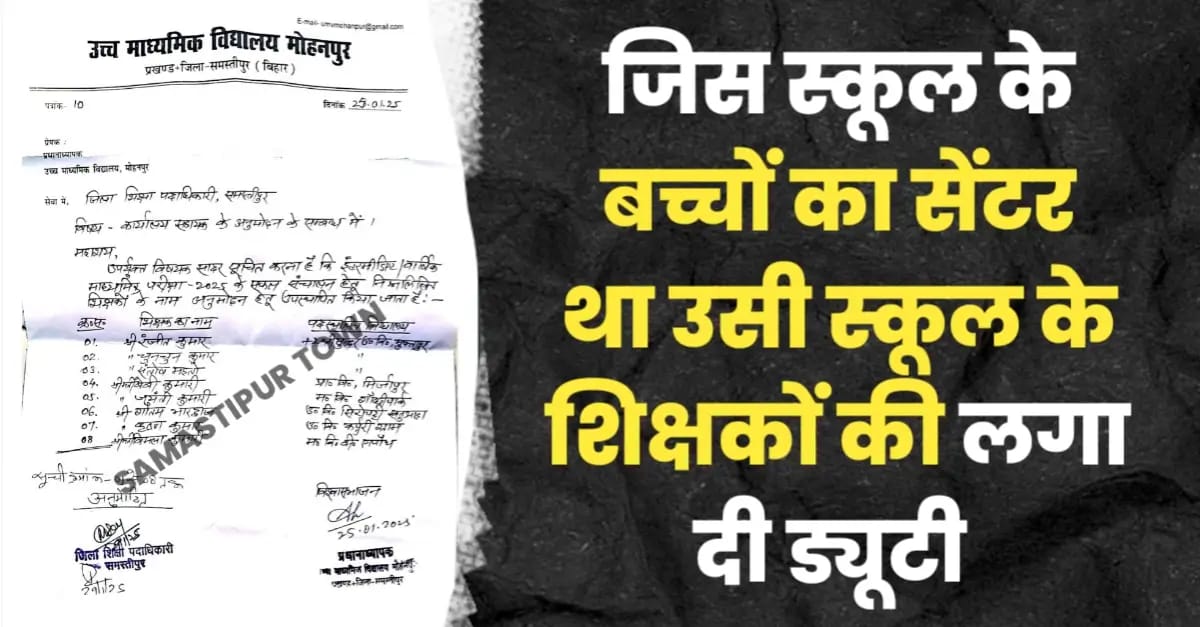 समस्तीपुर : जिला मुख्यालय स्थित उच्च माध्यमिक विद्यालय मोहनपुर परीक्षा केंद्र पर नियमों की धज्जियां उड़ाने का मामला सामने आने के बाद आनन-फानन सीएस ने शिक्षकों को मूल विद्यालय में योगदान के लिए विरमित किया। बताते चले कि उच्च माध्यमिक विद्यालय मोहनपुर परीक्षा केंद्र पर प्लस टू श्री सुंदर उच्च विद्यालय मुक्तापुर के छात्रों का इंटरमीडिएट वार्षिक परीक्षा का केंद्र बनाया गया है।