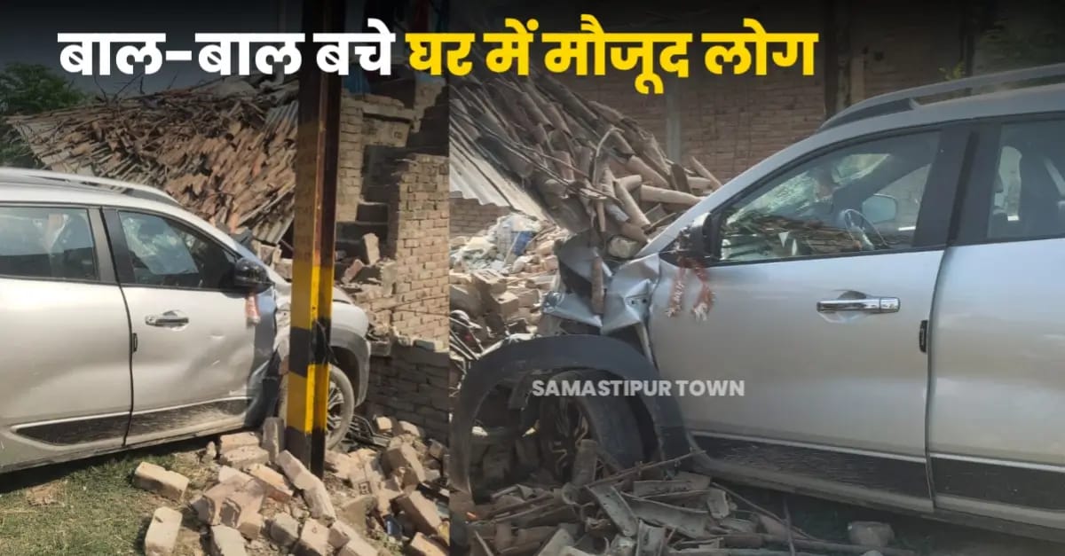 समस्तीपुर बाइपास बांध पर मोक्षधाम के नजदीक घर में घुसी असंतुलित कार, बाल-बाल बचे लोग