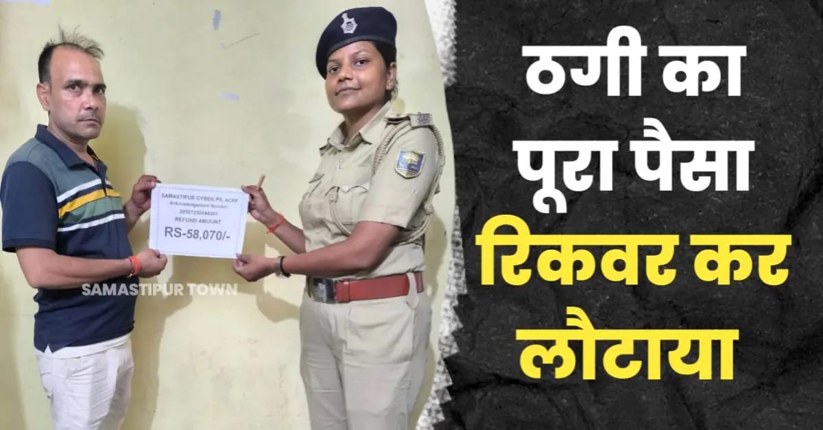 समस्तीपुर : साइबर ठगी के शिकार हुए एक व्यक्ति को पुलिस ने फ्रॉड की राशि रिकवर कर मंगलवार को लौटा दी। पीड़ित की पहचान मोहनपुर थाना क्षेत्र के डुमरी निवासी रामाधार राय के पुत्र जितेन्द्र कुमार राय के रूप में की गई है। पीड़ित ने बताया कि पिछले दिनों उसके साथ 58 हजार 70 रुपये का साइबर फ्रॉड हुआ था। इसके बाद उसने नेशनल साइबर क्राइम रिपोर्टिंग पोर्टल (1930) पर शिकायत दर्ज कराई थी।