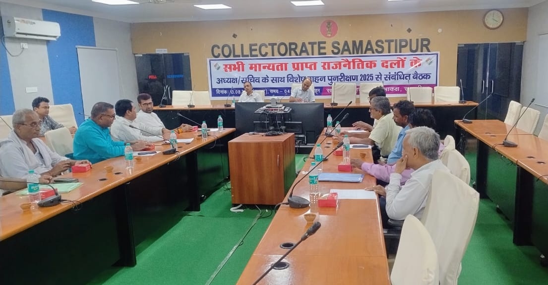 समस्तीपुर : जिला निर्वाचन पदाधिकारी-सह-जिला पदाधिकारी रोशन कुशवाहा की अध्यक्षता में बुधवार को मान्यता प्राप्त राजनीतिक दलों के जिला अध्यक्ष/सचिव के साथ विशेष गहन पुनरीक्षण को लेकर बैठक आयोजित की गई। बैठक में जिला निर्वाचन पदाधिकारी ने सभी दलों से अपील की कि सभी मतदान केन्द्रों पर कार्यरत BLO को सहायता प्रदान करने के लिए अपने BLA को सक्रिय करें। उन्होंने बताया कि 13 दिन बीत जाने के बाद भी BLA के स्तर से कोई दावा या आपत्ति प्राप्त नहीं हुई है। साथ ही निर्देश दिया कि BLA द्वारा दावा/आपत्ति के साथ अनिवार्य रूप से घोषणा पत्र भी प्रस्तुत किया जाए।
