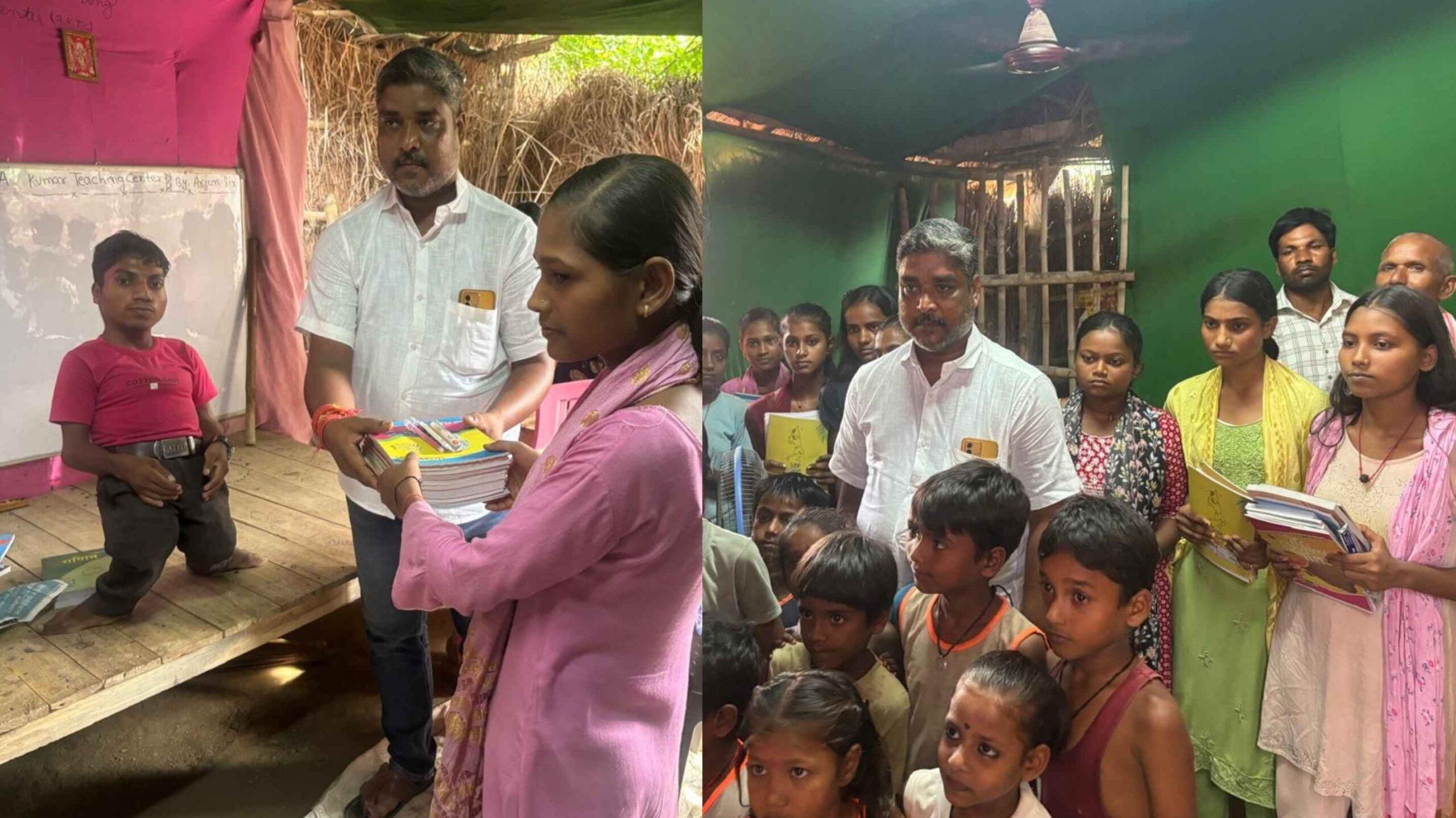 इस मौके पर स्थानीय सरपंच पति जयराम साहनी, चंद्रकांत सिंह, सुखलाल सहनी, रत्नेश राय, श्रीराम साहनी, प्रमोद राय, सुजीत कुमार, वरुण राय, सियाराम राम राय सहित दर्जनों ग्रामीण और छात्र उपस्थित थे। अर्जुन दास ने बताया कि स्कूल जाने के शुरुआती दिनों में लोग उनका मजाक उड़ाते थे, लेकिन उन्होंने कभी हार नहीं मानी। आज वे अपने आत्मबल और समर्पण के बल पर समाज में शिक्षा की अलख जगा रहे हैं। उनकी यह यात्रा हमें यह सिखाती है कि अगर नीयत नेक हो और इरादे मजबूत, तो कोई भी कमी आपको अपने लक्ष्य से नहीं रोक सकती।