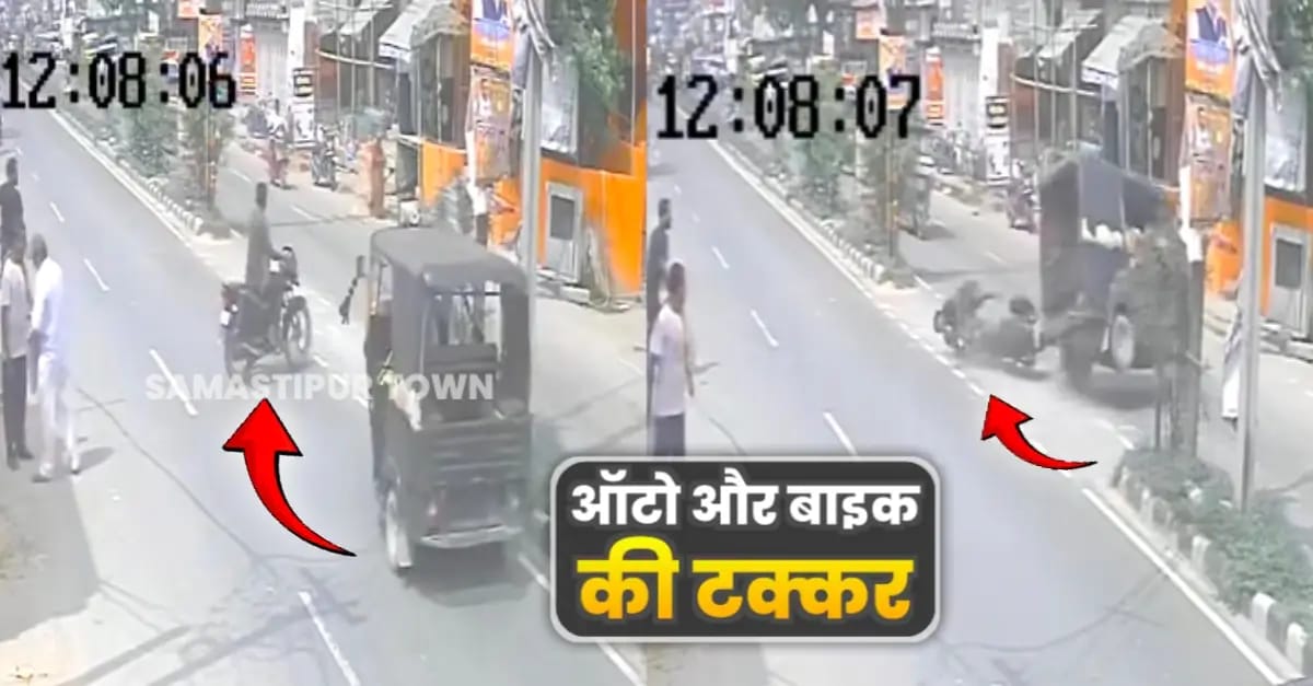समस्तीपुर : मुफस्सिल थाना क्षेत्र के दरभंगा-समस्तीपुर मुख्य मार्ग पर मोहनपुर नक्कू स्थान में शनिवार की दोपहर एक तेज रफ्तार ऑटो ने बाइक सवार को जोरदार टक्कर मार दी। इस हादसे में बाइक सवार व ऑटो चालक दोनों गंभीर रूप से घायल हो गए। स्थानीय लोगों ने तुरंत दोनों को एक निजी अस्पताल में भर्ती कराया, जहां उनका इलाज चल रहा है। खबर लिखे जाने तक घायलों की पहचान नहीं हो पाई है। इधर हादसे का पूरा वीडियो पास के एक सीसीटीवी कैमरे में कैद हो गया है, जिसमें स्पष्ट रूप से देखा जा सकता है कि तेज रफ्तार ऑटो ने बाइक सवार को पीछे से टर्निग लेते समय जोरदार टक्कर मार दी।