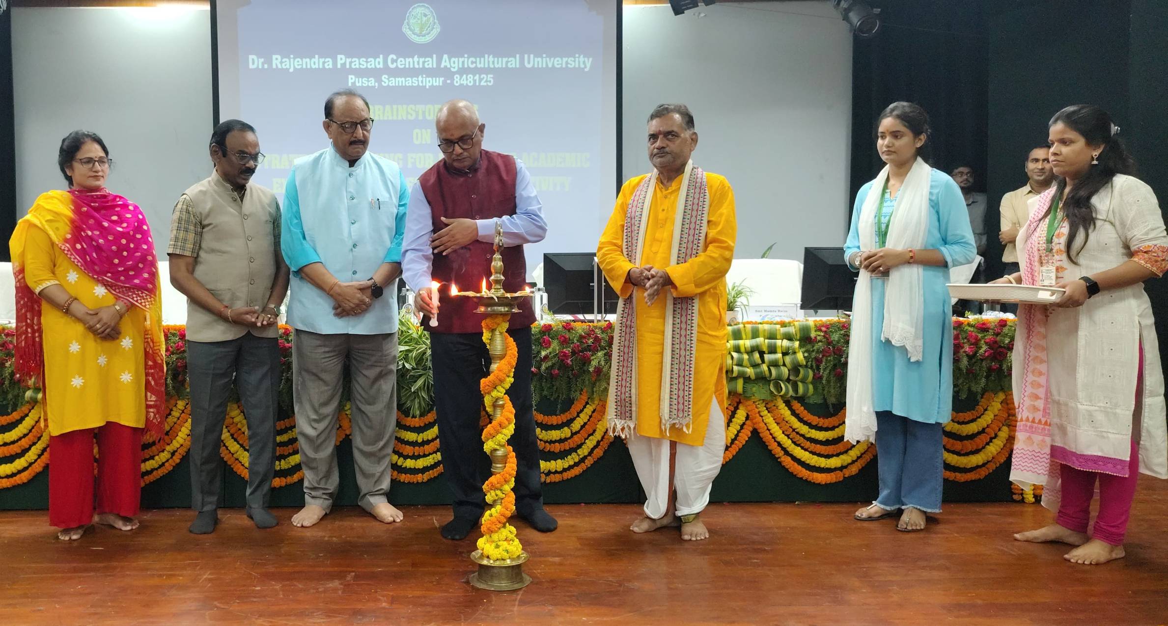 समस्तीपुर : डॉ. राजेन्द्र प्रसाद केंद्रीय कृषि विश्वविद्यालय में अकादमी श्रेष्ठता और अनुसंधान की गुणवत्ता को और बेहतर बनाने के लिये एक मंथन कार्यक्रम का आयोजन किया गया। कार्यक्रम के दौरान अध्यक्षीय संबोधन देते हुए कुलपति डॉ. पी एस पांडेय ने कहा कि सभी के सहयोग से विश्वविद्यालय ने एनआईआरएफ रैंकिंग, आईआईआरएफ रैंकिंग सहित सभी रैंकिंग में अच्छा स्थान हासिल किया है। उन्होंने कहा कि अच्छे रैंकिंग से जिम्मेदारी और बढ़ गई है कि आने वाले वर्षों में और बेहतर रैंक कैसे हासिल किया जाये।