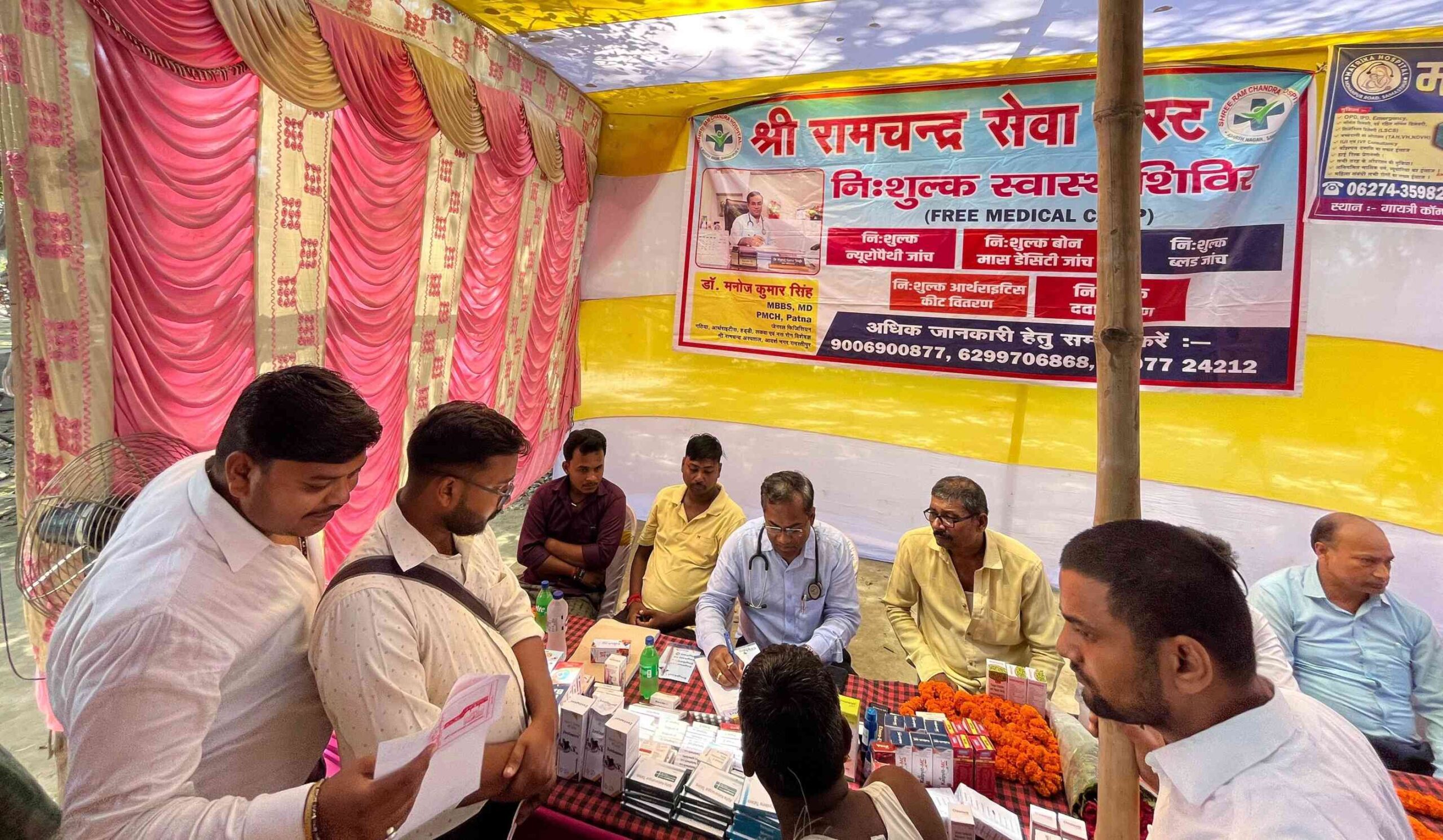 समस्तीपुर: श्री रामचंद्र सेवा ट्रस्ट द्वारा समस्तीपुर विधानसभा क्षेत्र अंतर्गत ग्राम पंचायत राज मोरदिवा वार्ड संख्या-3 के काली स्थान मंदिर परिसर में निःशुल्क चिकित्सा शिविर का आयोजन किया गया। इस शिविर में सैकड़ों वृद्धजनों, महिलाओं और बच्चों ने निःशुल्क चिकित्सा परामर्श और सेवाओं का लाभ उठाया। शिविर में नैचुरोपैथी जांच, बोन मास डेंसिटी जांच, ब्लड टेस्ट, आर्थराइटिस किट तथा दवाओं का निःशुल्क वितरण किया गया।
