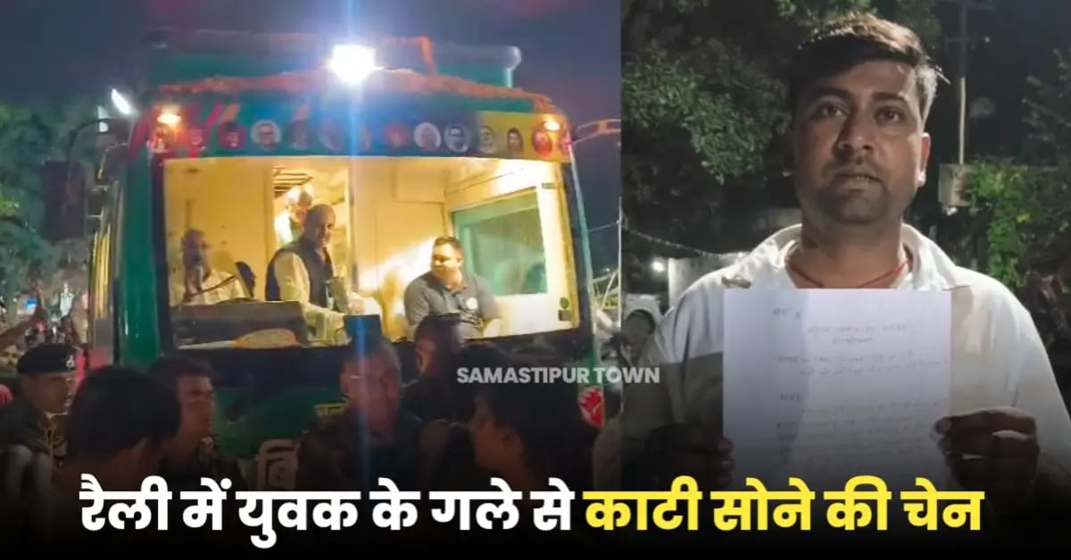 समस्तीपुर में तेजस्वी के यात्रा में युवक का सोने का चैन स्नैचिंग, थाने में शिकायत#samastipur #news pic.twitter.com/C4IwVMgtDr
