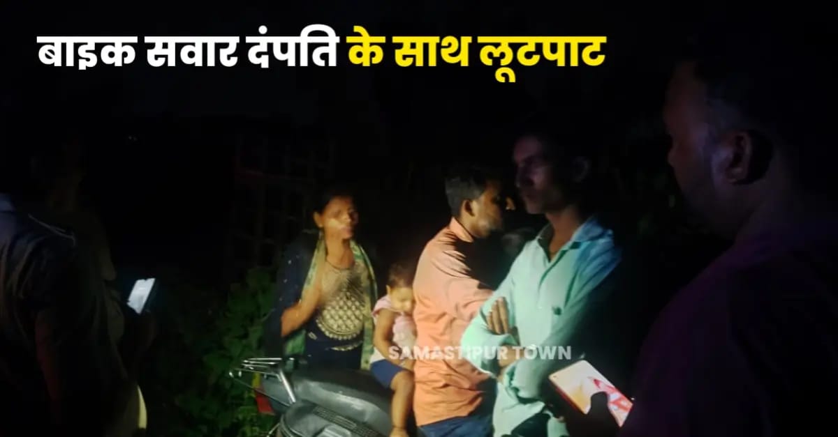 समस्तीपुर/विभूतिपुर [केशव बाबू] : विभूतिपुर थाना क्षेत्र के साखमोहन शहीद द्वार के पास सोमवार की देर शाम एक बाइक सवार दंपति के साथ तीन की संख्या में पहुंचे हथियार से लैश बाइक पर सवार बदमाशों ने लूट की घटना की घटना को अंजाम दिया है। सूचना पर पहुँची डायल-112 की टीम ने छानबीन शुरू कर दी है। घटना के बारे में बताया जाता है कि थाना क्षेत्र के विभूतिपुर पुरब पंचायत के खदियाही निवासी सतेंद्र कुमार अपनी पत्नी रानी कुमारी के साथ बेगूसराय से घर आ रहे थे।