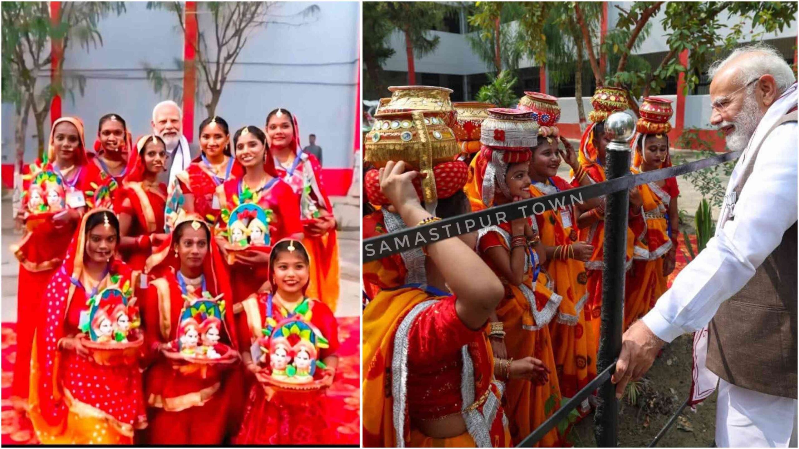 समस्तीपुर : बिहार विधानसभा चुनाव अभियान की शुरुआत के अवसर पर शुक्रवार को प्रधानमंत्री नरेंद्र मोदी समस्तीपुर के कर्पूरीग्राम पहुंचे। यहां उन्होंने भारत रत्न जननायक कर्पूरी ठाकुर की प्रतिमा पर माल्यार्पण कर उन्हें श्रद्धांजलि अर्पित की। इसी दौरान एक दिल छू लेने वाला दृश्य देखने को मिला। जब प्रधानमंत्री मोदी प्रतिमा स्थल की ओर जा रहे थे, तभी मार्ग में स्थानीय बच्चों ने मिथिला की लोकसंस्कृति से जुड़ी सामा-चकेवा और झिझिया की सुंदर प्रस्तुति दी।