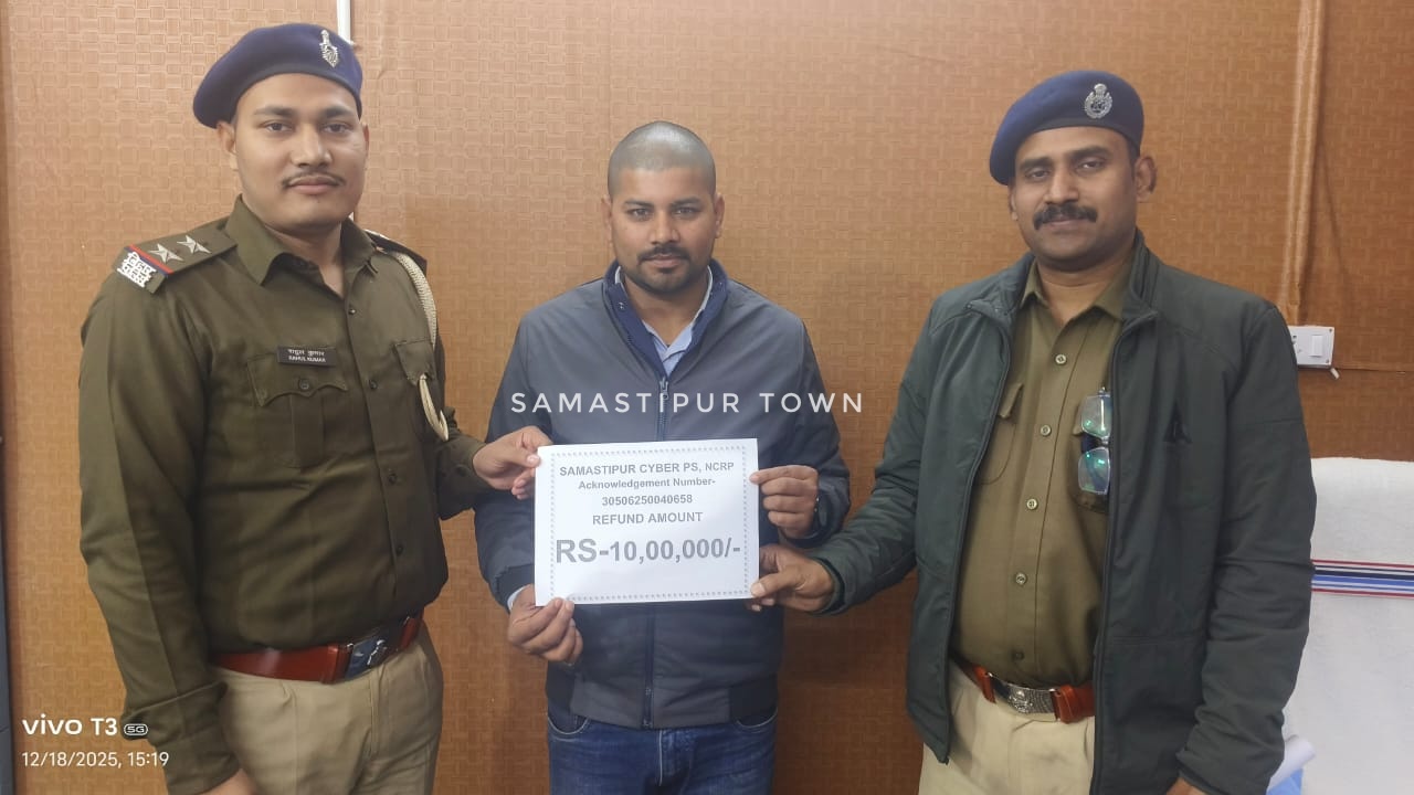समस्तीपुर : साइबर ठगी के एक मामले में त्वरित कार्रवाई करते हुए जिला साइबर थाने की पुलिस ने पीड़ित को ठगे गए पूरे 10 लाख रुपये की रकम फ्राॅड के अकाउंट से रिकवर कर वापस करा दिए। जानकारी के अनुसार वारिसनगर थाना क्षेत्र के एकद्वारी के रहने वाले आनंद पोद्दार के पुत्र राजा कुमार से साइबर फ्रॉड ने अनाज व्यवसाय के नाम पर 10 लाख रुपये की साइबर ठगी कर ली थी। ठगी की जानकारी मिलते ही पीड़ित ने नेशनल साइबर क्राइम रिपोर्टिंग पोर्टल के हेल्पलाइन नंबर 1930 पर शिकायत दर्ज कराई थी।