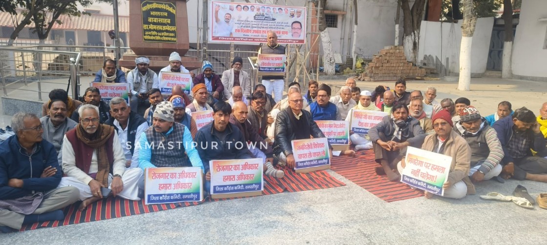 समस्तीपुर : जिला कांग्रेस कमेटी के तत्वावधान में डॉ. भीमराव अम्बेडकर स्मारक स्थल पर मनरेगा बचाओ संग्राम अभियान के तहत एक दिवसीय उपवास एवं प्रतीकात्मक धरना का आयोजन किया गया। कार्यक्रम की अध्यक्षता जिला कांग्रेस अध्यक्ष अबू तमीम ने की। सभा को संबोधित करते हुए जिला अध्यक्ष ने कहा कि केंद्र की भाजपा सरकार द्वारा मनरेगा जैसी ऐतिहासिक एवं जनकल्याणकारी योजना को लगातार कमजोर करने का षड्यंत्र किया जा रहा है। मनरेगा योजना के नाम से महात्मा गांधी का नाम हटाने की कोशिश न केवल राष्ट्रपिता का घोर अपमान है, बल्कि यह ग्रामीण भारत के गरीबों, मजदूरों और किसानों के अधिकारों पर सीधा हमला है।