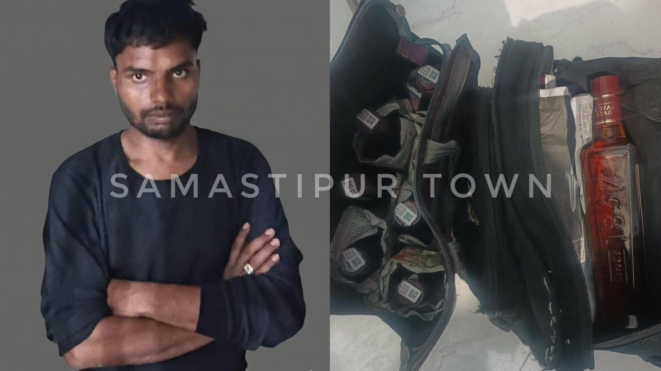 समस्तीपुर शहर के थानेश्वर स्थान मंदिर के पास बैग में मिली 12 बोतल विदेशी शराब, कारोबारी भी गिरफ्तार