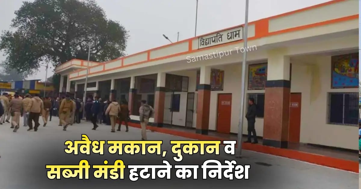 विद्यापतिधाम स्टेशन चौक से स्मारक चौक तक अवैध मकान, दुकान व सब्जी मंडी हटाने का नोटिस