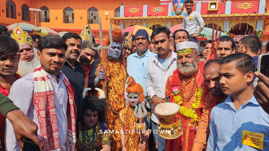भक्त व भगवान की नगरी बालेश्वर स्थान विद्यापतिधाम में निकली शिव की भव्य बारात झांकी