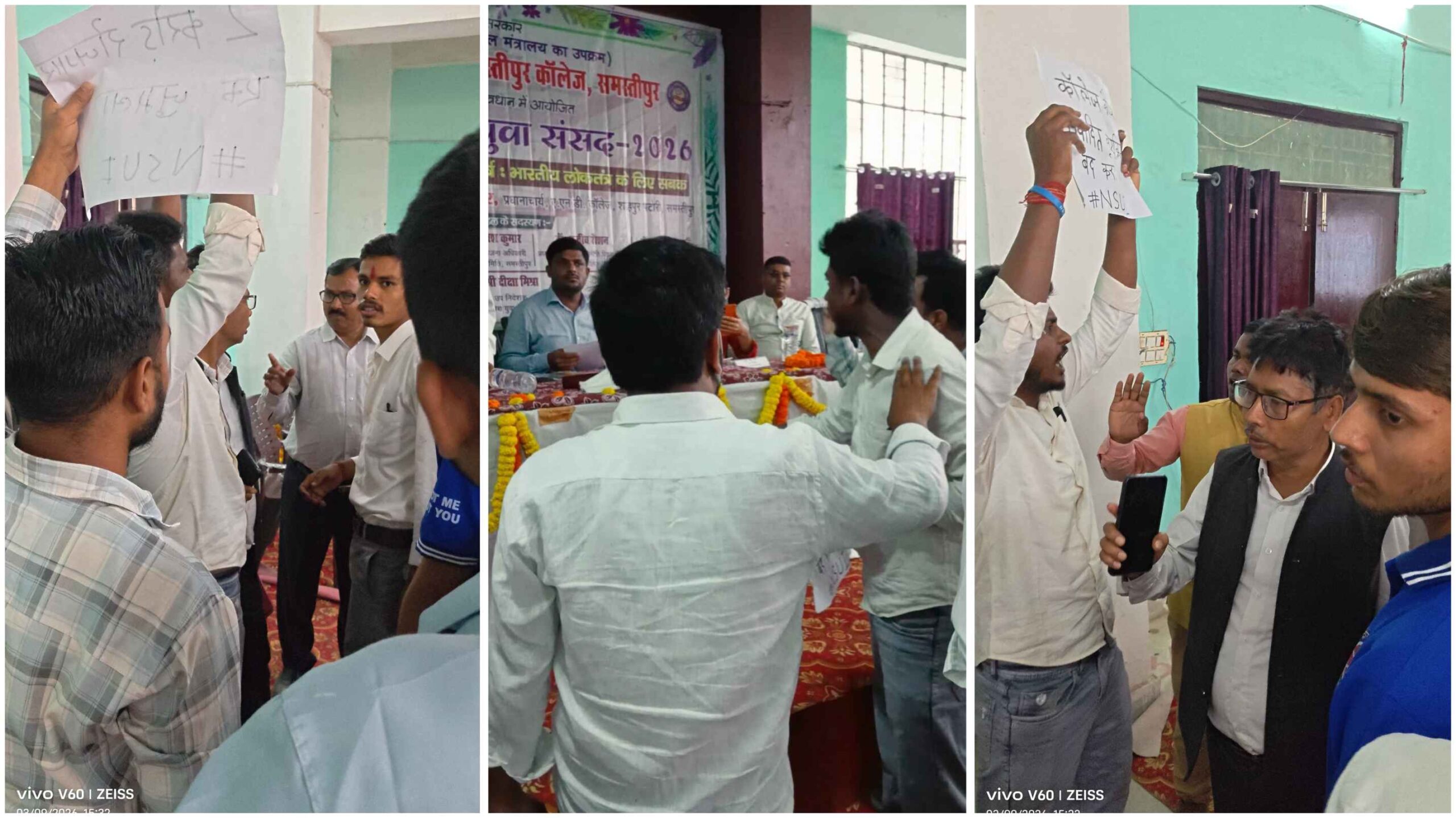 समस्तीपुर कॉलेज में ‘आपातकाल के 50 साल’ शीर्षक पर आयोजित कार्यक्रम को लेकर NSUI कार्यकर्ताओं का प्रदर्शन