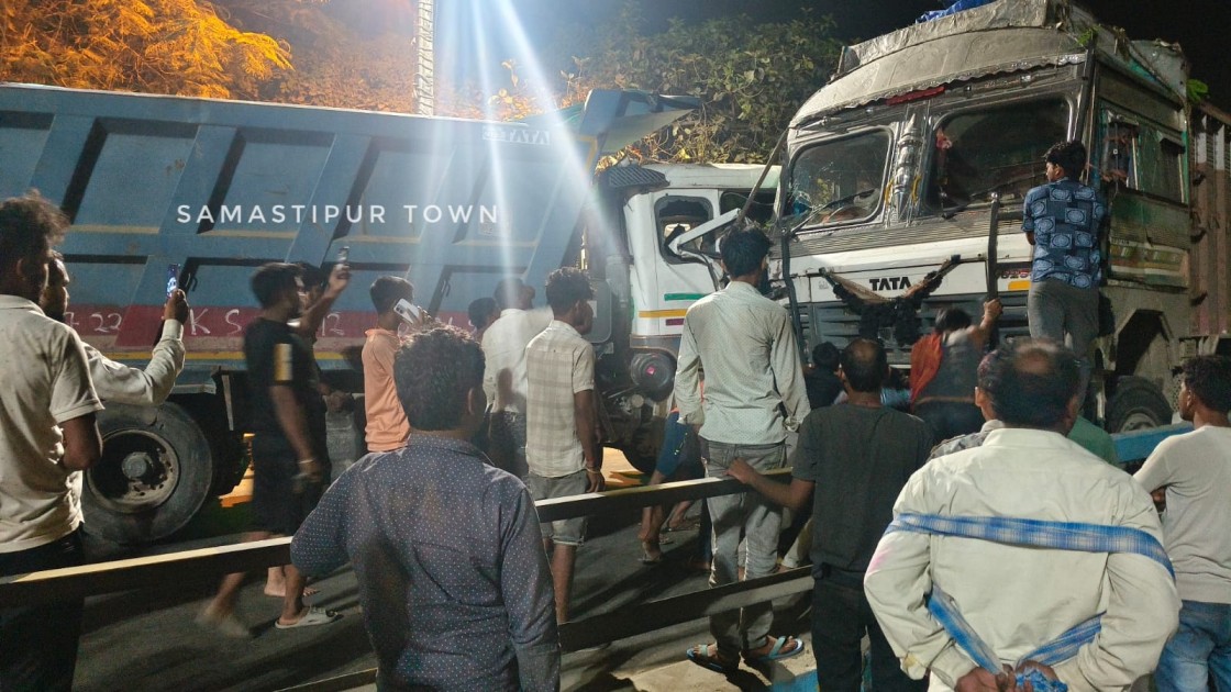समस्तीपुर : शहर के बीचों-बीच स्थित ओवरब्रिज पर बुधवार की देर रात दो ट्रकों के बीच आमने-सामने की जोरदार टक्कर हो गई। घटना नगर थाना व मुफस्सिल थाना के सामनें ही ओवरब्रिज पर हुई। टक्कर के दौरान तेज आवाज सुनाई देने पर तुरंत ही नगर व मुफस्सिल थाने की पुलिस थाने से निकलकर मौके पर पहुंची। इस हादसे में किसी भी जानमाल की क्षति नहीं हुई, हालांकि दोनों ट्रक चालकों व खलासी को हल्की चोटें आई हैं।