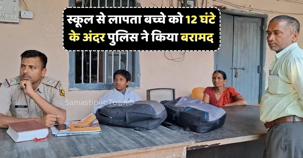 समस्तीपुर : मुफ्फसिल थाना क्षेत्र के विशनपुर वार्ड संख्या-09 से लापता हुए एक 12 वर्षीय छात्र को पुलिस ने त्वरित कार्रवाई करते हुए सकुशल बरामद कर लिया है। बच्चे के सुरक्षित मिलने की खबर मिलते ही परिजनों में खुशी का माहौल लौट आया और सभी राहत की सांस ली। बताया गया है कि विशनपुर वार्ड संख्या-09 निवासी राजीव कुमार ठाकुर का पुत्र हरिओम कुमार (12) बुधवार की सुबह पढ़ने के लिए राजकीय मध्य विद्यालय, विशनपुर गया था।