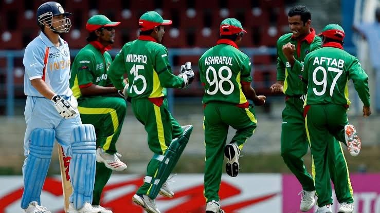 – बांग्लादेश बनाम भारत 2007 वर्ल्ड कप, ग्रुप स्टेज: बांग्लादेश ने वेस्टइंडीज की मेजबानी में खेले गये विश्व कप के ग्रुप बी मैच में भारत को पांच विकेट से शिकस्त देकर बड़ी सफलता हासिल की थी। भारतीय टीम इस विश्व कप में ग्रुप चरण से ही बाहर हो गयी थी।